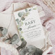 Budget Eucalyptus Verdure Aquarelle botanique Succulente Printemps Genre Neutre Baby Boy ou Baby Girl Baby Shower Invitations sur arrière - plan blanc - comprend belle et élégante typographie script avec feuilles botaniques modernes et verdure pour la célébration spéciale Mère à être.