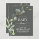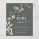 Budget Eucalyptus Verdure Aquarelle botanique Succulente Printemps Genre Neutre Baby Boy ou Baby Girl Baby Shower Invitations sur arrière - plan blanc - comprend belle et élégante typographie script avec feuilles botaniques modernes et verdure pour la célébration spéciale Mère à être.