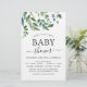 Budget Floral Greenery Botanical Watercolor Spring Baby Shower Invitations sur arrière - plan vert et blanc - comprend belle et élégante typographie de script avec feuilles botaniques modernes et verdure pour la célébration spéciale Mère à être.