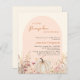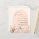 Un élégant petit Citrouille est sur le chemin de l'invitation Baby shower. Arrière - plan de couleur crème, beige et arche couleur pêche. Décoré de fleur sauvage couleur eau en beige, rose et citrouille crème. 1 feuille = 1 invite imprimé bord à bord.