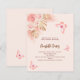 Pour un baby shower de style boho moderne. Un arrière - plan de pêche. Décoré de fleurs roses d'or et de rose, de roses, d'herbe de pampas et de papillons. Personnalisez et ajoutez un nom et des détails du parti. Retour : arrière - plan de couleur pêche et papillon. 1 feuille = 1 invite imprimé bord à bord.