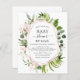 Budget Vert Botanique Eucalyptus Aquarelle et or Rose - Blush Pink Baby shower de printemps géométrique par Mail Invitations sur arrière - plan blanc - comprend belle et élégante typographie script avec feuilles botaniques modernes et la verdure pour la fête spéciale Mère à être.