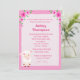 Bonne invitation pour un baby shower de filles. Invitation a une adorable illustration d'agneau avec un arc rose et une fleur rose.