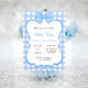 Cette invitation baby shower présente un arrière - plan à damiers bleu et blanc avec un grand arc bleu en haut. La zone centrale est entourée d'un arc bleu, parfait pour ajouter du texte personnel. Le design est charmant et élégant, parfait pour célébrer un nouveau bébé.