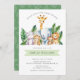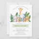 Cette adorable invitation au baby shower présente un charmant thème de jungle, parfait pour fêter l'arrivée d'un nouveau lot de joie. Les couleurs vives et les illustrations d'animaux mignons créent une atmosphère fantaisiste et ludique, donnant le ton pour un événement amusant et mémorable. Le stock de cartons de qualité et le design détaillé font de cette invitation un choix charmant pour tout baby shower à thème de jungle.