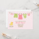 Cette mignonne invitation au Baby shower comprend un canard en caoutchouc mignon et des vêtements de bébé rose et vert, des chaussettes et un bib sur une ligne de linge. Cette invitation à la douche moderne et élégante est parfaite pour toute maman.