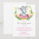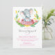 Baby shower d'Eléphant fille par Mail Invitation. Invitation au Baby shower virtuel. Longue distance. Carte rose et gris. Invitation Baby shower fille. Aquarelle Floral Flower et Leave. Fond blanc. Pour plus de personnalisation, cliquez sur le bouton "Customiser" et utilisez notre outil de conception pour modifier ce modèle.