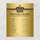 Prince baby shower jeux avec le mot bébé se bousculent d'un côté, et cri de la comptine quiz de l'autre. Ce flyer royal bleu et or prince couronne baby shower jeu flyer est amusant et économique! Vous pouvez changer les questions et les mots. Remettez-les à vos invités en leur disant de ne pas regarder, puis commencez l'horloge. Quand le temps est écoulé, lisez les réponses et la personne qui a le plus droit gagne un prix. Vous pouvez même ajouter les mots et les rimes de votre choix ! Voici les réponses aux jeux : Word Scramble Réponses : 1. Bassinet 2. Déchets 3. Bouteille 4. Crib 5. Siège De Voiture 6. Mobil 7 Shampooing 8. Serviette 9. Balais bébé 10. Pacifique 11. Poussette 12. Booties Nursery Rhyme Quiz Réponses : 1. Trois 2. Éloigne 3. Au début du matin 4. Rire, Spoon 5. Regard sur le verre 6. Vert et jaune