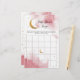 Au-dessus de la carte d'activité du baby shower à thème de lune. Amusez-vous à votre baby shower avec cette carte de jeu de bingo. Aquarelle en rose avec fausse lune d'or et étoiles. Le jeu de bingo demande aux invités de deviner quels cadeaux la future maman recevra. Illustration et dessin originaux de Namibear Art Studio.©Namibear