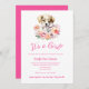 Un mignon petit chiot et belle invitation Baby shower de fleurs roses.