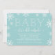 Whimsical mais élégant avec une couverture de flocon de neige festive aux bords, notre invitation de baby shower hivernal présente une typographie moderne en blanc immaculé sur un arrière - plan vert aqua neutre genre avec "bébé il fait froid dehors" au sommet. Ajoutez les détails de votre baby shower d'hiver à l'aide des champs fournis.