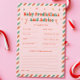 Faites de votre baby shower un jeu inoubliable avec notre Baby shower de Noël rose personnalisé Baby Predictions Jeu! Parfait pour un thème Père Noël Baby baby shower, ce jeu de baby shower amusant ajoute une touche festive à votre célébration. Idéal pour les idées de baby showers sur le thème de Noël, c’est un grand ajout à vos idées de baby showers de décembre. Profitez de la joie du plaisir de Noël baby shower avec ce jeu unique - parfait pour quiconque recherche des idées de baby shower de Noël et des idées de jeux de baby shower.