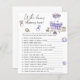 L'invitation montre l'aquarelle d'un berceau, d'une nourrice mobile sous forme de nuages ronds violets, des jouets pour enfants : un éléphant rongeur, un canard sur roues, un ours en peluche, un lapin, un bib, une sucette, une pyramide.