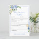 Carte de Baby shower Editable Baby Prediction and Advice, Florals bleus imprimés, baby shower garçon, élégant baby shower bleu, fleur bleue,