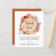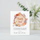 Un joli carte de remerciements de baby shower économique avec un design d'automne rustique avec une aquarelle illustrant une couronne composée d'un tronc d'arbre, d'animaux des bois (hibou, cerf, écureuil et renard), de fleurs et de citrouilles d'automne et de "Merci !" écrit dans un script en terre cuite. Personnalisez votre message de remerciement et ajoutez votre ou vos nom(s) dans un script de signature, ou laissez vide pour une note manuscrite.