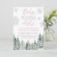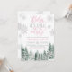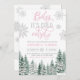 L'invitation comprend des flocons de neige et des pins à feuillage persistant avec des lumières de Noël roses. Ce design est parfait pour un baby shower d'hiver pour une fille.