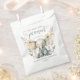 Doux petit arachide thème aquarelle éléphant enchanteur illustration baby shower sacs de faveur. Imaginez une carte délicate ornée de touches douces d'aquarelle, montrant au centre un éléphant de charme. Cette adorable créature est entourée avec amour d'un ensemble de fleurs et de feuillage luxuriant, créant une scène fantasque et accueillante. Le type de script choisi pour la touche de fantaisie, avec ses courbes et boucles gracieuses créant un rythme entre le type et l'image et les couleurs pastel douces dans l'imagerie et la typographie. Idéal pour une fête de baby shower de printemps ou d'été.