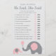 Baby shower Eléphant Rose Il A Dit Qu'Elle A Dit J