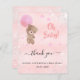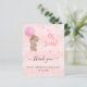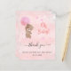Un arrière - plan rose à gradient or. Une fille en peluche tenant un ballon rose étoiles et une fausse parties scintillant scintille. Personnalisez et ajoutez le ou les nom(s) et une date à l'avant. Le nom et le texte : Oh Baby! sont écrits avec un script de style écrit main Retour : Merci note et nom(s)
