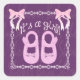 Cute Purple C'est un autocollant fille avec des chaussures de bébé roses et deux arcs.