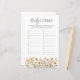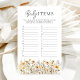Célébrez la future mère avec notre jeu de Baby shower rustique. Ce jeu élégant et unique comprend des fleurs sauvages de boho et un jeu amusant de devinette pour bébé. Présentez une touche de fantaisie à votre événement tout en divertissant vos invités. Amusez tradition, style et plaisir dans votre baby shower avec ce jeu unique.
