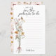 Vous recherchez un beau thème de baby shower pour une maman à la maison ? Consultez ce Baby shower Fleur sauvage Conseils pour la carte Parents. Il dispose d'un beau bouquet de fleurs sauvages aquarelles sur un arrière - plan blanc. Sur le dos, on découvre un joli motif floral avec un arrière - plan rose. Mais vous pouvez changer la couleur arrière - plan dans l'outil de conception. Vous pouvez ajouter vos propres détails très facilement en utilisant les champs modèles. Nous avons toute une collection d'articles assortis et des fournitures de fête avec ce merveilleux thème fleur sauvage avec différentes options pour les invitations. Vous pouvez les voir sous le produit (Cliquez sur le lien sous l'en-tête "Autres produits de cette collection"). Heureux de customiser et d'avoir une grande fête!