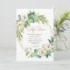 Cette belle invitation au baby shower présente de belles aquarelles vertes, des fleurs blanches et une couronne d'or. Si élégant et joli ! Des articles de fête correspondants sont également disponibles. © Mini Moi Prints