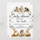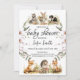Cette invitation a de mignons animaux boisés avec des fleurs blanches. L'Invitation aimait les gens à partager la joie d'un petit en chemin avec cette invitation baby shower, avec des animaux illustrés de bois.