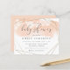 Cette invitation chic au baby shower présente un lavage d'aquarelle rose vif sur le blanc avec une bordure géométrique en faux feuille d'or autour d'une typographie manuscrite branchée et serif. Parfait pour les baby showers de printemps ou d'été. Dans le cadre de la sélection du budget ici sur Zazzle, ces invitations ne sont pas fournies avec des enveloppes et ne s'insèrent pas dans une enveloppe de taille standard. La taille la plus proche est A6 mais il y aura un écart d'environ un demi-pouce. Si vous n'avez pas peur du manque de douceur, vous pourriez utiliser des enveloppes A6 aussi largement disponibles. Sinon, cette conception peut être transférée dans un format standard 5x7 (avec enveloppes) à l'aide de l'outil de transfert de conception. À titre d'exemple, au moment de la rédaction du présent document, 100 invitations budgétaires (y compris une remise sur le volume) coûteraient environ 39 $, alors que 100 invitations standards 5x7, y compris des enveloppes, coûteraient environ 135 $. Votre kilométrage peut varier en fonction des codes promo disponibles de Zazzle, des ventes à l'échelle du site ou des changements de prix.