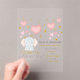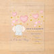 This is a charming baby shower invitation featuring a cute watercolor elephant surrounded by pink hearts and gold stars, announcing that "A Little One is On the Way!"
