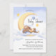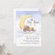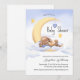 Baby shower invitation décorée d'un adorable lapin dormant sur la lune.