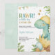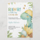 Baby shower invitation featuring a dinosaur