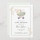 baby shower invitation fleurs vertes, fleurs, invitation baby shower, Pram, moderne, élégant, moderne invitation baby shower, baby shower élégant,