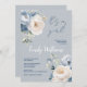 Invitation baby shower pour une fille à l'aquarelle bleu et blanc poussiéreux, couleurs pastel