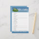 Customisez ce jeu avec le nom de Maman-to-Be... ou supprimez ! RÉPONSES : 1. formule 2. linges 3. torchon 4. sucette 5. bonnet 6. lotion pour bébé 7. couverture 8. bassinette 9. chaise haute 10. bouteille 11. sac pour couche 12. aspirateur (utilisé pour nettoyer le nez) 13. poussette 14. hochet 15. botties