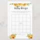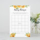 Jeu de baby shower, Bingo de bébé Jeu avec thème tournesol jaune. Non sexiste.
