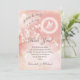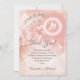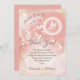La partie supérieure de ce carte de remerciements artistique de baby shower de fille présente un papillon blanc dans un halo et des fleurs blanches sur un arrière - plan d'aquarelle rose pâle abricot. L'arrière - plan d'aquarelle à encre a des taches dorées mélangées avec des fleurs blanches transparentes. Avec un titre qui dit : "Un petit papillon est en route", des mots Mercis dans un élégant script calligraphique et un texte personnalisé avec des noms personnalisés.