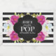Faites votre propre "She's About To Pop", garçon ou fille baby shower vin mousseux faveurs avec ces étiquettes personnalisés. Joli do-it-yourself "elle est prête à pop" les étiquettes de vin mousseux sont uniques et ajouter une touche de classe à votre baby shower. Elles sont ornées de fleurs d'aquarelle avec rayures noires et arrière - plan en damier. Les étiquettes sont un peu plus grands pour couvrir la plupart des petits étiquettes de vin et s'adaptent parfaitement sur les mini bouteilles de vin mousseux de taille standard. Pour voir d'autres designs comme ceux-ci, visitez www.zazzle.com/vginvites