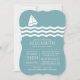 Baby shower de bateau à voile moderne & chic invitation pour un baby shower bébé garçon. L'élégante invitation nautique comprend un voilier avec une vague moderne posée sur un arrière - plan bleu. Retournez l'invitation pour trouver une correspondance contemporaine.