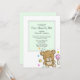 Un joli baby shower interurbain sans sexe par la poste invitation par la carte postale avec un ours en peluche fantaisiste avec du bétail, accompagné d'un texte de caractère fantaisiste sur une bannière vert menthe pâle. Un grand choix pour ceux qui ne peuvent pas être là, mais veulent participer à aider à donner à votre bébé un bon départ dans la vie. Customisez avec vos informations et le mois d'échéance.