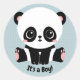 Blue Panda "C'est un garçon !" autocollants. Idéal pour les invitations à la douche bébé. Le texte peut également être changé en un nom pour les autocollants pour enfants.