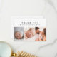 Express votre gratitude avec notre "Baby shower 3 Photos Simple Heart Carte de remerciements". Cette carte de charme présente un design simple et sucré et des photos personnalisables, parfaites pour présenter des souvenirs de votre journée spéciale. Personnalisez le message sur le dos pour ajouter une touche de coeur, ce qui fait de ces cartes de remerciement une belle façon de montrer votre appréciation à vos invités. Il s'agit d'une petite carte, voir d'autres options de taille de carte.