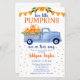 Cet adorable petit Citrouille Twin Boy Baby shower invitation avec un pick-up bleu aquarelle chargé de citrouilles d'automne serait parfait pour votre douche! C'est fabuleux pour fêter l'automne ou le temps de la moisson. Tellement mignon pour accueillir une nouvelle paire de jumeaux !
