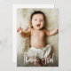Personnalisez facilement ce carte de remerciements de baby shower et annoncez la naissance de votre bébé en même temps. Customisez avec votre propre photo, salutation, naissance de bébé, nom, statistiques et signer. Une belle tenue et carte réfléchie, design moderne Script Typographie pour le mot "merci" sur le devant. Carte de format vertical.
