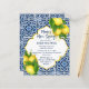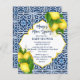 Carrelage bleu et citron Amalfi Positano style méditerranéen baby shower invitation budget modèle Maroc style frontière sculptée, Mama's Main Squeeze baby shower genre neutre.