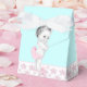 Adorable ballotins de baby shower rose et bleu turquoise. Vous pouvez ajouter du texte, changer la couleur arc et ajouter une couleur arrière - plan de votre choix à ce joli ballotin de baby shower princesse rose.