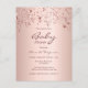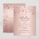 Une invitation à baby shower girly. A l'avant : Un arrière - plan rose à l'apparence métallique. Décoré d'or rose, de cuivre coulant et d'étoiles brillantes. Modèles pour que la mère soit le nom et les détails de la fête. Le nom et le texte : Bébé sont écrits avec un script de style écrit à la main, des lettres de couleur noire. Précédent : arrière - plan rose d'or avec étoiles Conseil : Si vous ne voulez pas qu'il ressemble à une carte postale, cliquez sur personnaliser, allez à l'arrière et retirez le séparateur et timbre.