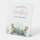 Ce panneau d'accueil baby shower est muni d'une bordure inférieure de canetons de bois aquarellés. La mère à être nom est défini dans la typographie script tendance en rose poussiéreux. Utilisez les champs modèle pour customiser le texte. Idéal pour une douche bébé. Pour voir la suite printemps et été correspondante visitez www.zazzle.com/dotellabelle
