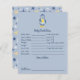 Demandez à vos invités de baby shower de remplir cette mignonne carte de prédictions et de conseils pour bébé qui comporte une jolie illustration dessinée à la main pingouin bébé tenant une étoile jaune. Cette adorable carte de conseil sur le thème du pingouin d'hiver fait pour un gardien merveilleux et est une activité amusante pour votre baby shower à thème de pingouin arctique! L'arrière de cette carte présente un motif étoilé peint à la main, bleu et jaune, qui est amusant et fantaisiste.