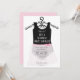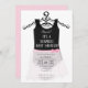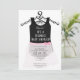 Tutu ballerina invitation baby shower rose qui peut être personnalisée avec l'inclusion de vos détails de baby shower. Le design se compose d'une jupe rose avec le traditionnel leotard noir avec un arc rose. Le dos de l'invitation a un motif répété de petites formes de diamants roses contre un arrière - plan blanc. Cette invitation pourrait être utilisée pour toute invitation de baby shower surprise sur le thème du ballet ou de la ballerine pour une petite fille.